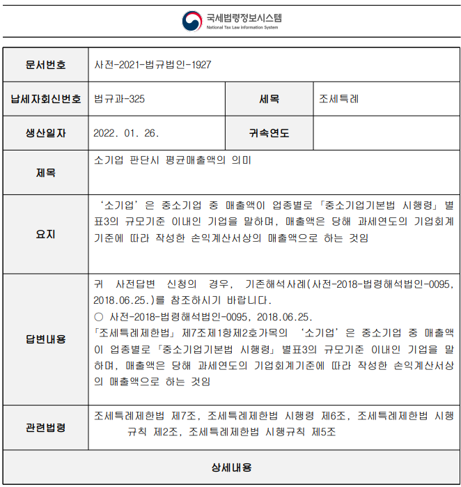 사전-2021-법규법인-1927 자료에서 확인가능하며, 요지는 다음과 같다.